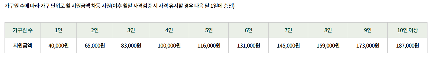 - 지원 금액: 가구원 수에 따라 차등 지급