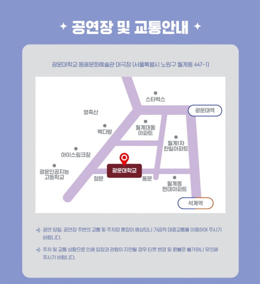 - ✔️ 공연장 주변 주차 공간이 협소할 수 있으니 대중교통 이용을 추천합니다!