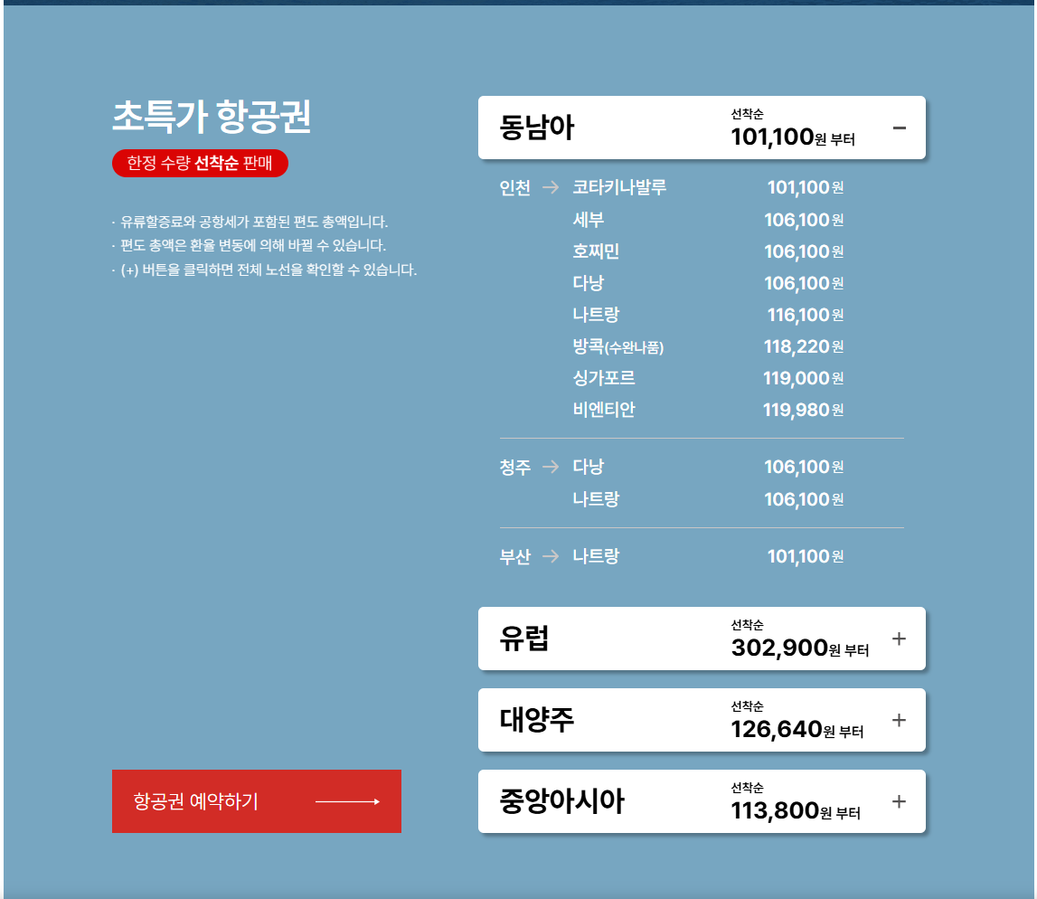 - ✅ 최대 할인 가격: 동남아 항공권 10만원부터! (공항세 및 유류할증료 별도)