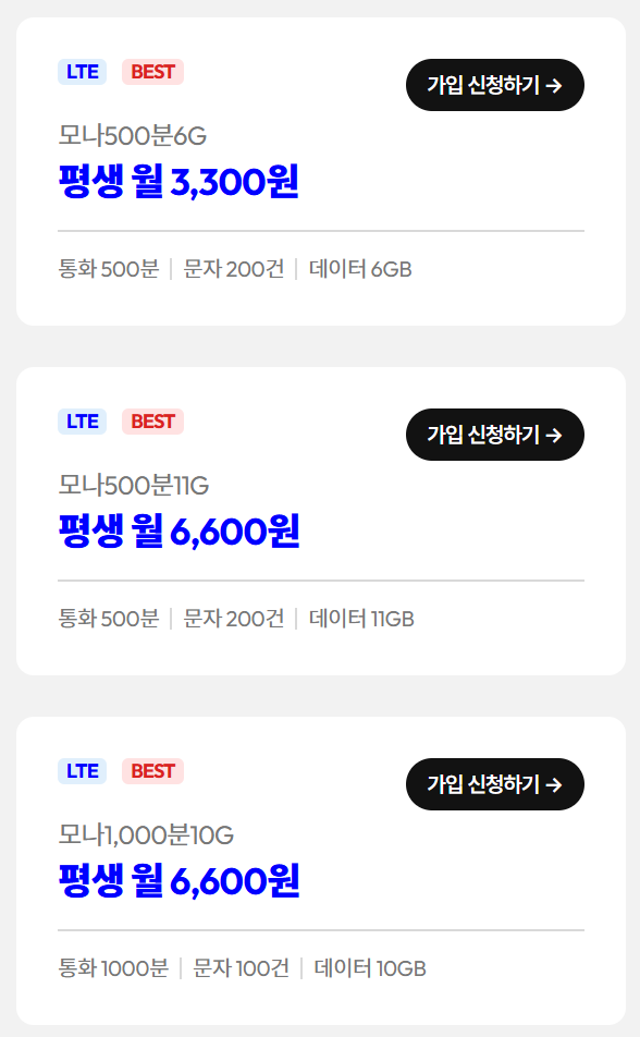 3. 2025년 모나 알뜰폰 BEST 요금제 & 최저가 요금제 추천